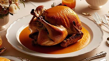 Regue o frango com o molho de laranja nos últimos 20 minutos de cozimento.